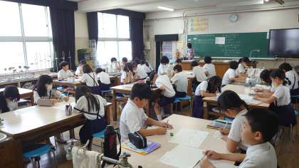 実験の前には、各自の予想を立て、自分の考えを交流させてから実験に臨みますが、予想の段階で「砂が一番早い」「砂利の方が早くしみこむ」と予想は割れていました。