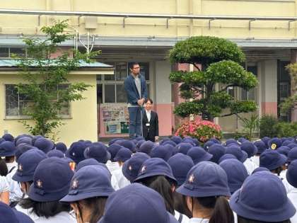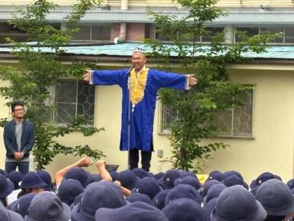 来週に迫った「春の全校遠足ー大阪・関西万博2025ー」に向けて、当日学校で留守番の教頭がガーナの民族衣装で登壇。今回の万博は158の国と地域、9つの国際機関が参加しているそうです。様々な国の人々や今まで知らなかった世界の文化に触れる良いきっかけになることを願います。