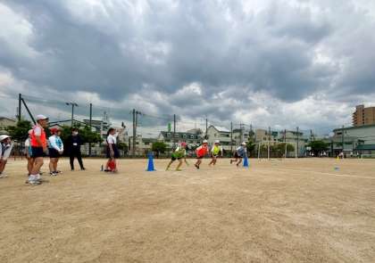 29日(木)6時間目、陸上クラブは、チームに分かれてリレーに取組みました。