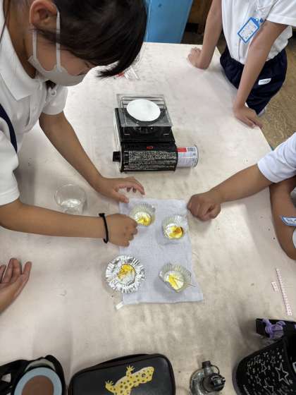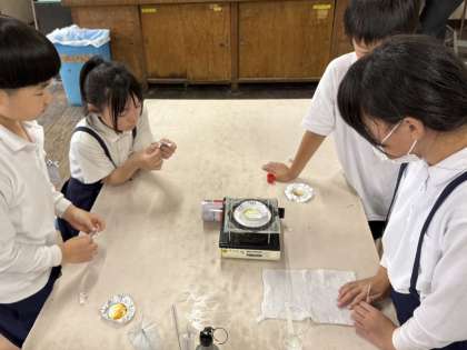 べっこうあめを作りました。熱する時間が難しいのですが、あめの状態をよく観察しながら上手に焼き上げています。