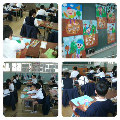 2月4日(木)、1年生がおとぎ話の「おむすびコロリン」の絵を描いていました。