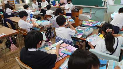 どれもカラフルな作品で個性が光っています。作品作りをしている時の子ども達の笑顔がとっても輝いていました。