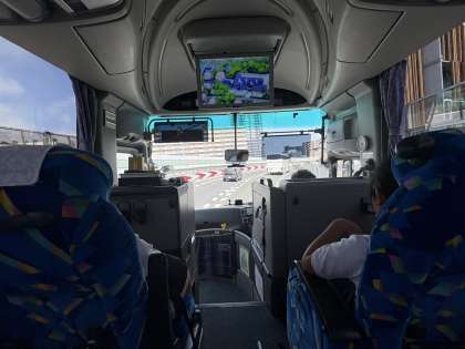 下段、4年生が乗車したバスは通天閣とハルカスを通過した模様、みんなでコナンの映画を見ているそうです。