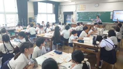 みんなでモーターを回し、検流計で電流の大きさと向きを確かめました。「乾電池の向きを変えたら、電流の向きも変わる」ということを検流計で確かめることができました。