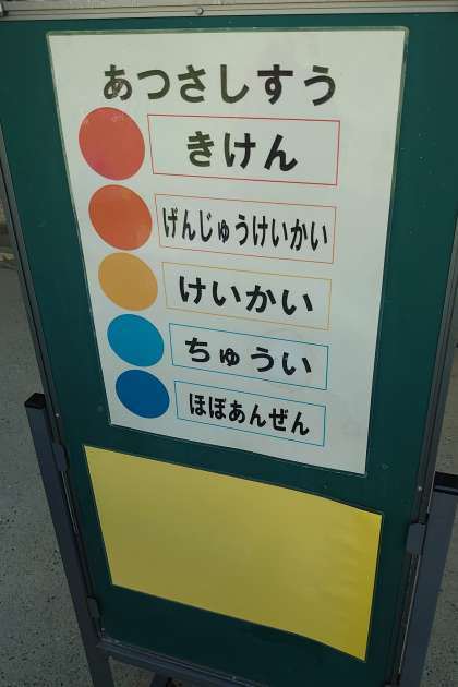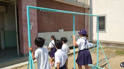 学校では、中運動場の校舎の窓から見える場所に暑さ指数の色を掲示しています。