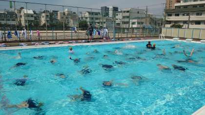 気温の上昇でプールに入ることができるか心配していた4年生でしたが、無事に入水することができ、たくさんの笑顔を見ることができました。