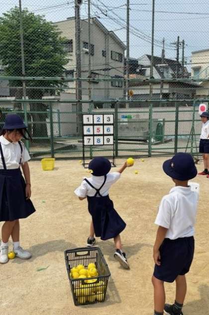 運動場には的当てを準備し、コントロール強化にも努めています。
