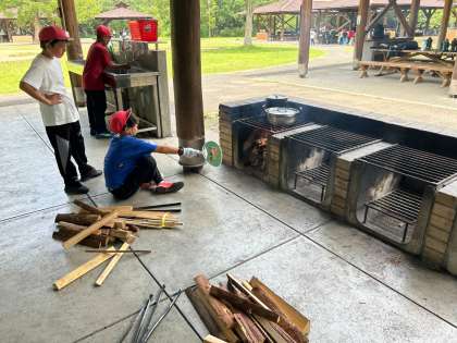 火の当番は重要ですね。どの班もうまく煮込んでくれますように。