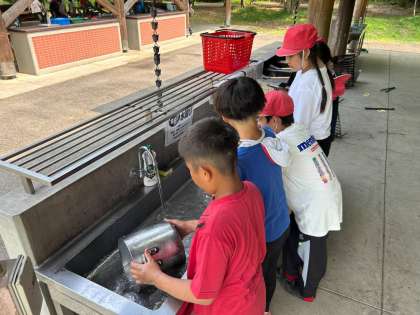 みんなで作ったカレーライスの出来栄えとおいしそうに食べる子ども達の写真が送られてくるのを期待して待っていましたが、次に送られてきたのは片付けの写真でした。