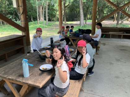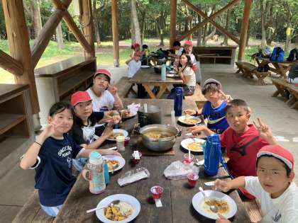 おいしそうに出来上がったカレーと子ども達の様子をご覧ください。