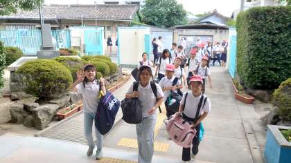 足取りは疲れていますが、学校で待っていた保護者の方や先生の顔を見ると、パッと笑顔になる様子を見せてくれました。