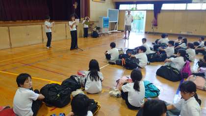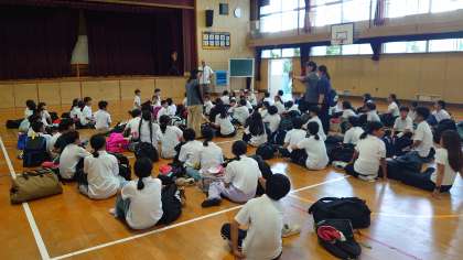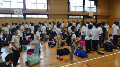 体育館での帰校式。
