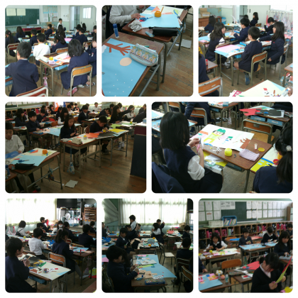 色画用紙をハサミで切って糊で貼り付け、「冬の楽しみ!!」の貼り絵をしていました。先週末には、東海・関東地方では「春一番」が吹きましたが、今週は、また、寒さが舞い戻っています。でも、子どもたちにとって冬の楽しみといえば、雪だるまづくり。たくさんの子どもたちが雪だるまづくりを題材に貼り絵をしていました!!