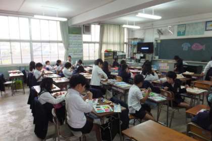 児童たちは、平面的な作品1点と立体的な作品1点をつくります。