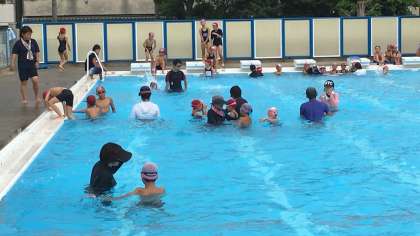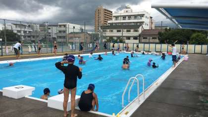 今日から2日間、高学年は25m,中学年は10mを目標にして、水泳の特別練習を実施しています。