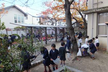 11月29日(金)、1年生が生活科で落ち葉拾いをしました。