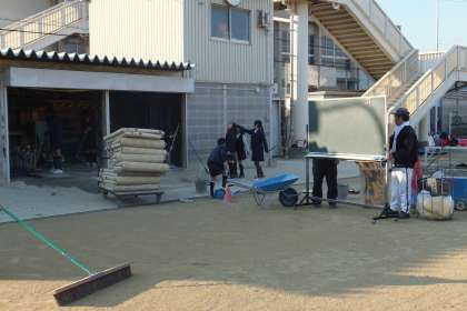 運動委員会は、東運動場の体育倉庫を一生懸命に片付けていました。