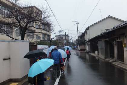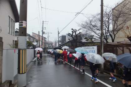 担当の先生から、集会のめあてを聞き、学校からの距離が遠い班から体育館を出ました。正門からは、傘をさして、班長を先頭に下校しました。