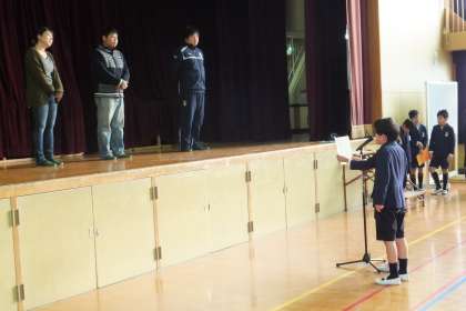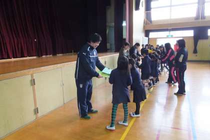最後に、給食週間でのクイズの表彰を行い、集会は終わりました。