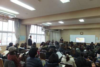 2月7日(金)、午後2時45分から本校多目的室で、新入生保護者対象に入学説明会がありました。