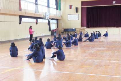 4時限目が始まると放送で指示があり、各教室に集合しました。