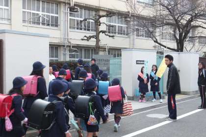 午前8時10分、チャイムが鳴ると一斉に「おはようございます!!」の元気な声が正門に広がりました。