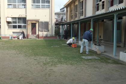 また、中運動場では、グリーンクラブの方たちが、芝生の手入れをしてくださいました。