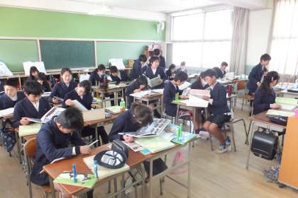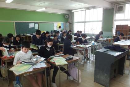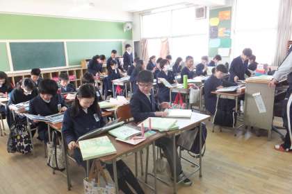 児童たちは、笑顔と思い出がいっぱいつまったアルバムを手にし、とてもうれしそうです。1年生の学級写真と今の姿を比べて大笑いしたり、運動会や修学旅行の写真をみて、思い出話で盛り上がっていました。
