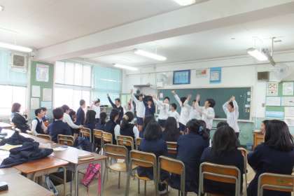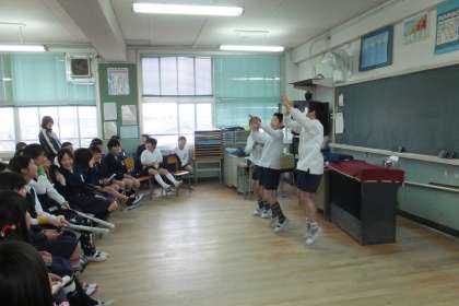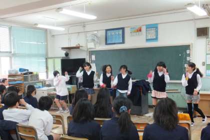 5年2組のゴールデンボンバーの「女々しくて」のダンスでは、観客もいっしょに踊り出し、大盛り上がり。