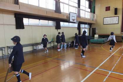 来週7日(月)に迫った入学式の準備のため、6年生が登校しました。