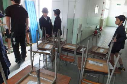 新6年生が、頑張ってくれました。校庭の清掃は、強風で桜の花吹雪が巻き起こり大変だったようです。各学年の教室にも、机・椅子が運び込まれました。