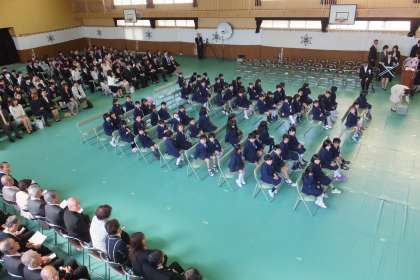 式が始まると緊張した面持ちで、校長先生・PTA会長の話を聞いていました。
