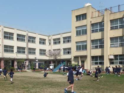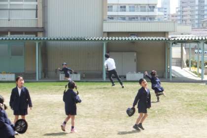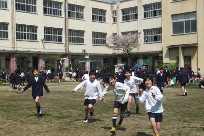 休憩時間には学年を問わず、みんな、春の風を感じて走り回っていました。
