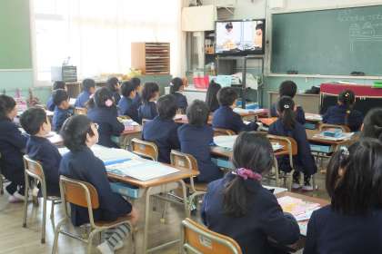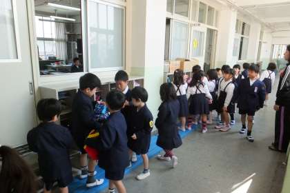 1年生は、学習ビデオを見たり、先生のお話を聞く正しい姿勢、靴箱の使い方などいろいろなお勉強をしていました!!