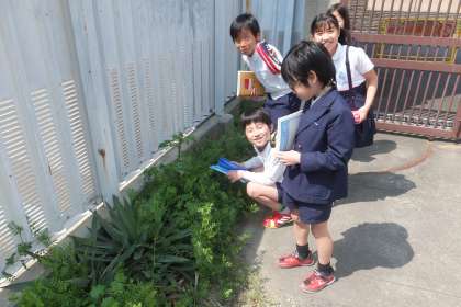 4年生の理科の学習では、学校の中の「春」を探す学習をしていました。