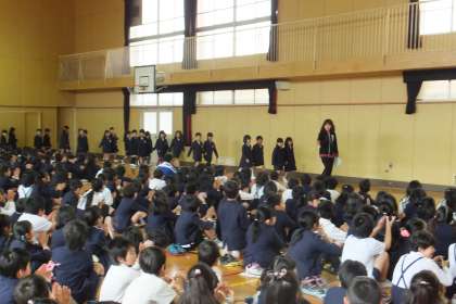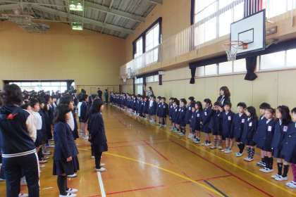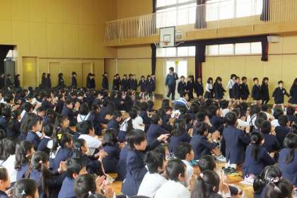 大きな拍手に迎えられて1年生が、少し照れながら入場してきました。きっちりと整列し、向かい合わせになりました。