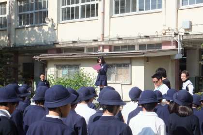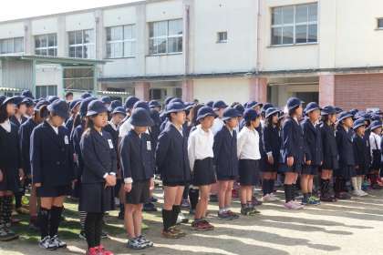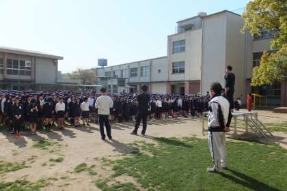 晴れわたった青空の下、子どもたちが中運動場に集合しました。
