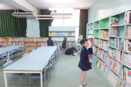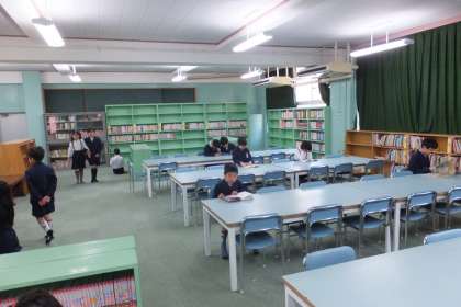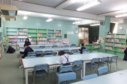 本校では、毎日、2・3時限目の間の休憩時間に、図書委員会による図書館の開放を行っています。図書委員は、放送で図書館開放を知らせ、図書の整理や貸し出しをしています。今日は、青空が広がり晴天だったので、運動場で遊ぶ児童が多く、図書館へ来る児童はちょっと少なかったかもしれません。