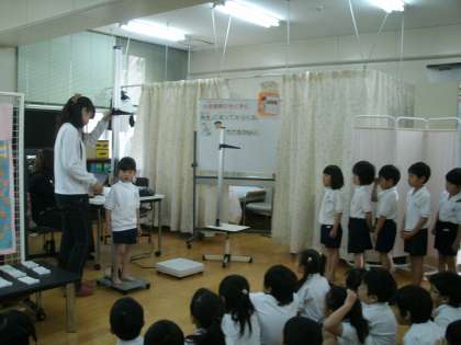 4月16日(水)、先週6年生から始まった発育測定が、1年生まで回ってきました。先生の指示どおり、静かに身長・体重・座高を測定できました。