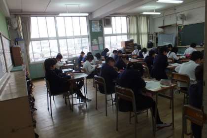 1時限目が国語・算数Aの基礎問題、2時限目が国語Bの発展問題、3時限目が算数Bの発展問題、4時限目が児童質問用紙をしました。