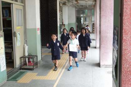 図書室や理科室では、入り口に置かれた箱から、自分たちでシールをとり、