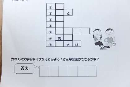 オリエンテーリングが始まりました。ポイントを回って、パズルに言葉を入れて、隠された言葉を探します。