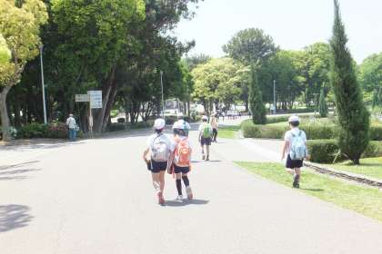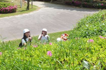 広い緑地内では、なかなかポイントが見つかりません。途中でタンポポの綿帽子を見つけて、フッーと息を吹きかけている子もいました。