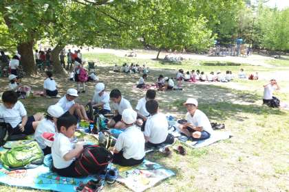 みんなが集合できたので、やっと、待ちに待ったお弁当の時間です。みんなで集まって美味しくいただきました!!