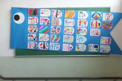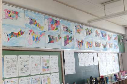 4年生の教室では、個性豊かな色彩々の鯉のぼりが泳いでいます。