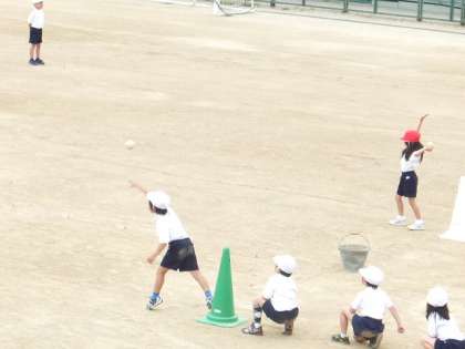 今月末のスポーツテストに備えて、広い東運動場を横切りダッシュしたり、ソフトボール投げの練習をしていました。みんな、先生のの指示をよく聞き、きれいなホームでソフトボールを投げていました。