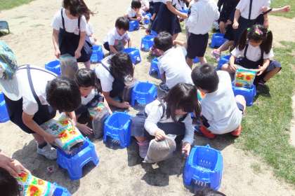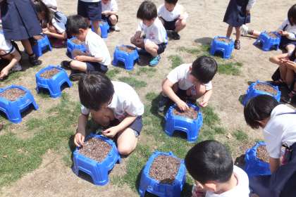 5月13日(火)、1年生が生活科の学習でアサガオの種を植えました。