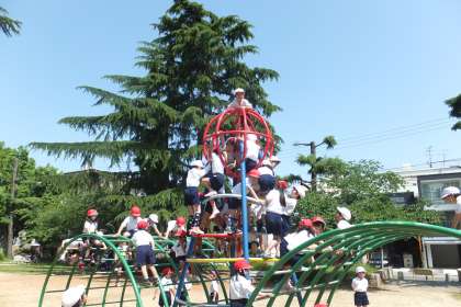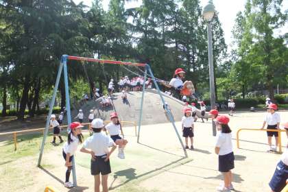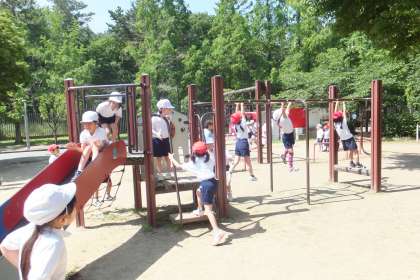 まず、最初は、滑り台やジャングルジム、ブランコなどの遊具で遊びました。