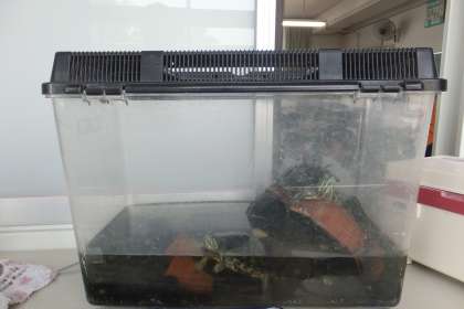 6月4日(水)、学校の廊下を歩くと、教室のくつ箱の上に水槽を見かけます。餌をあげすぎたのか、少し水が濁った水槽には、コブナがいました。水が少ない水槽には、カメがいました。イモリを飼っている水槽もありました。5年生は、各学級でヒメダカを飼っており、卵から数ミリしかない子メダカも孵っていました。