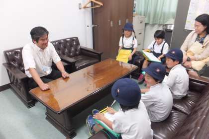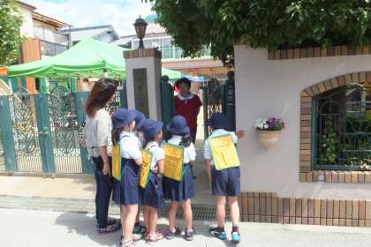 保育園に行ったグループは、インターホンを鳴らし、出てきていただいた園長先生にしっかり、あいさつし、園内に入れていただきました。